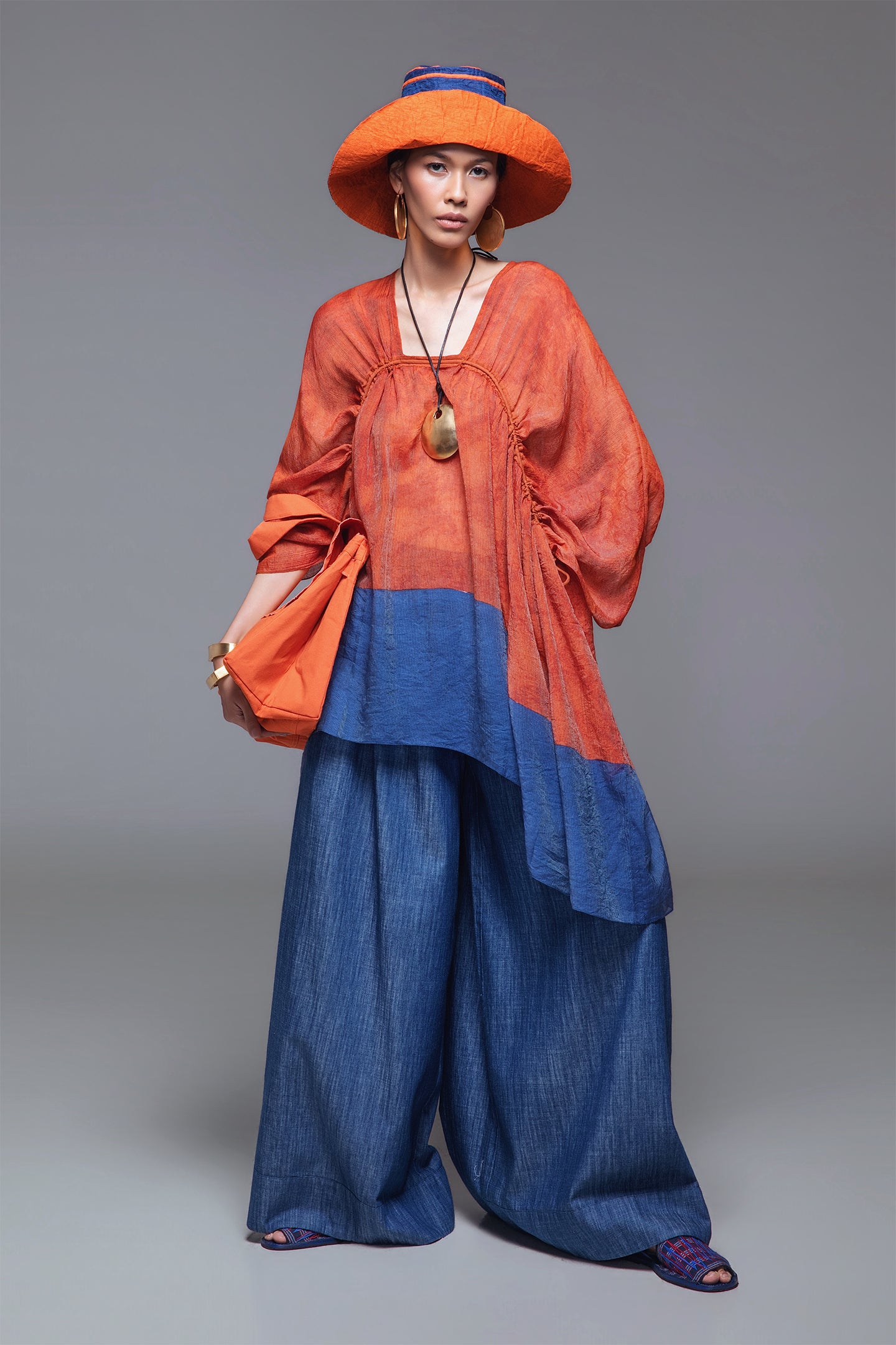 Malia Pants are defined by voluminous wide-leg silhouette, creating a fluid and dramatic effect with every step. The elasticated waistband with an inner drawstring provides adaptable comfort, while discreet side pockets add a functional touch. Made from cotton denim, these pants offer an effortless elegance, perfect for refined yet relaxed styling.