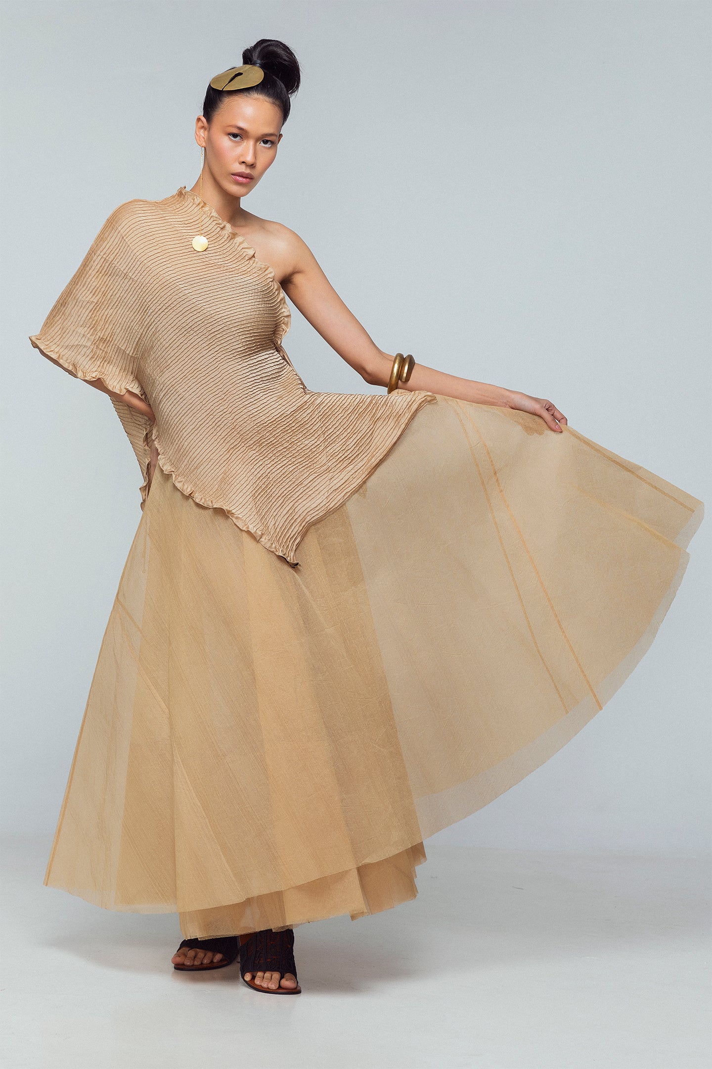 The Manda scarf is crafted from smooth silk satin and designed as a versatile styling piece rather than a classic accessory. Finished with fine pintuck detailing throughout, it features discreet straps that allow the scarf to be transformed and styled in multiple ways. Lightweight and fluid, it can be worn as a statement layer, wrapped, draped, or styled as a top depending on the look.