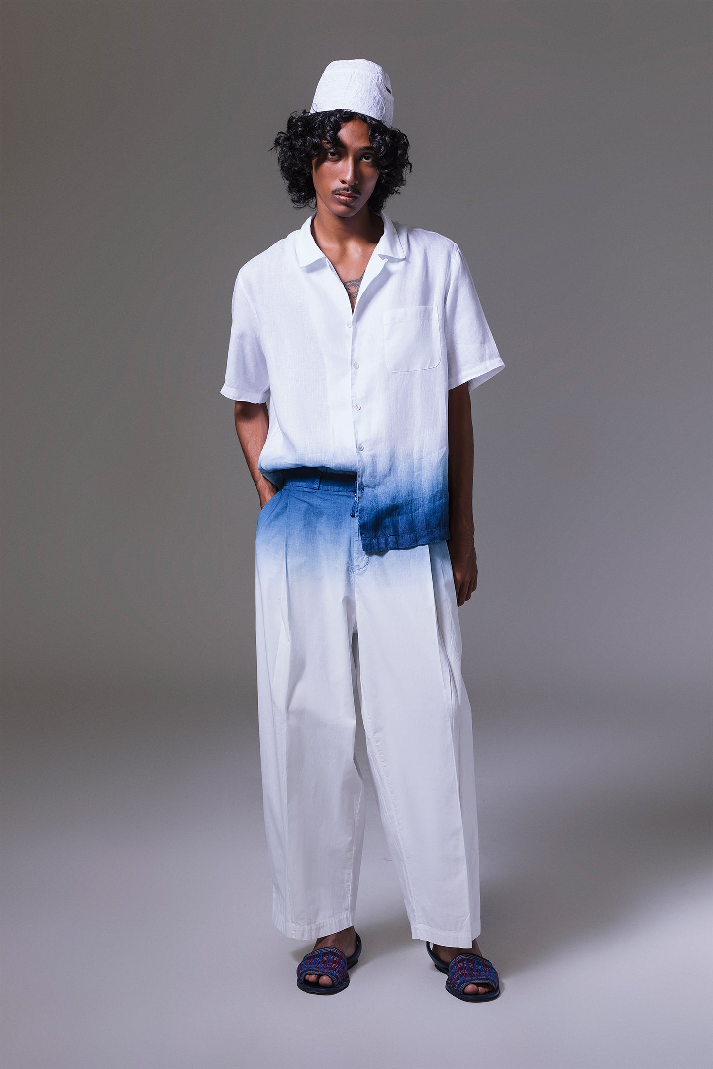A relaxed yet refined staple, Mark Shirt showcases the beauty of natural dyeing techniques with its indigo dip-dyed hem. Crafted with an open, notch lapel-like collar, this short-sleeve design offers a breezy, effortless feel. Designed for versatility, it seamlessly complements both casual and elevated looks.