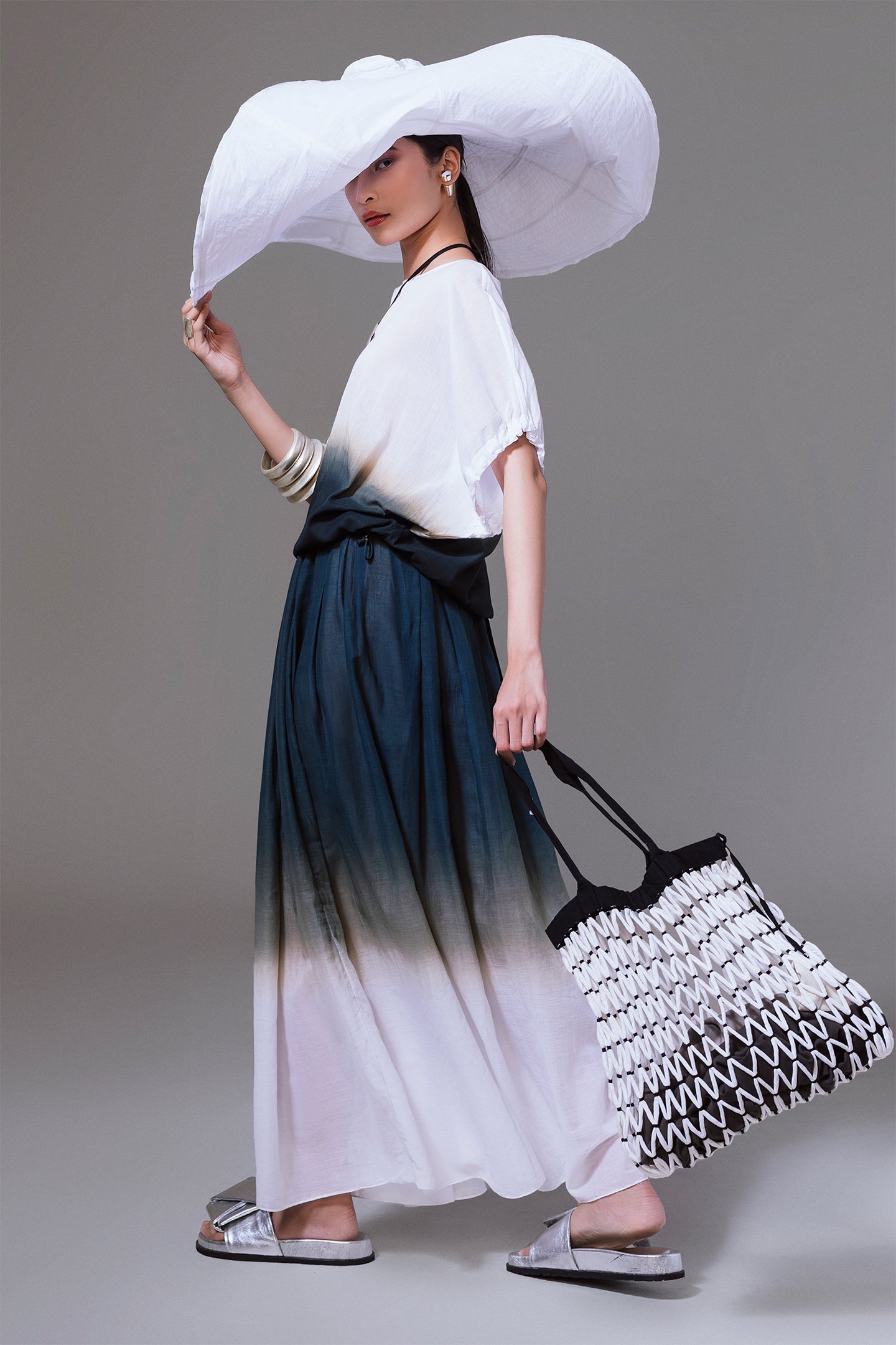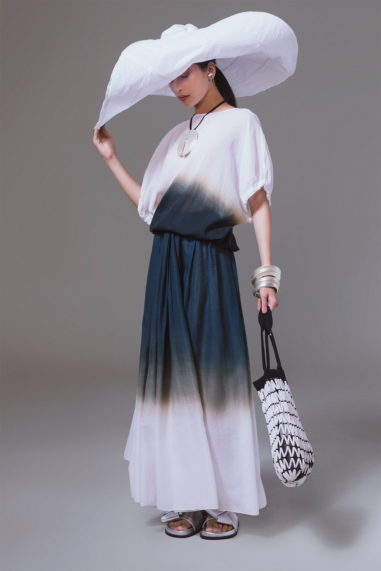 Matrena Top captures the essence of airy sophistication, designed for those who value both comfort and style. With its relaxed one-size fit, gathered sleeves, and a boat neckline, it offers a unique blend of elegance and ease. The adjustable drawstring hem accentuates the waist, while the dip-dyed detail lends a subtle yet captivating flair. Perfect for layering or wearing as a standalone piece.