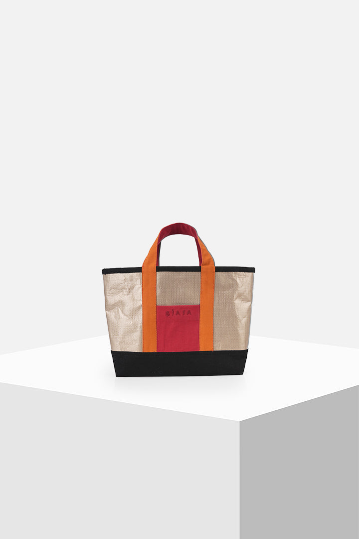The Mini Gaya bag is a compact version of the large Gaya shopper. Made from Terpal (Tarpouline) and Canvas the Gaya bags are innovative, colorful, and iconic. Originally intended in Indonesia for industrial use, BIASA has creatively repurposed the use of Terpal to create this everlasting coveted fashion piece.